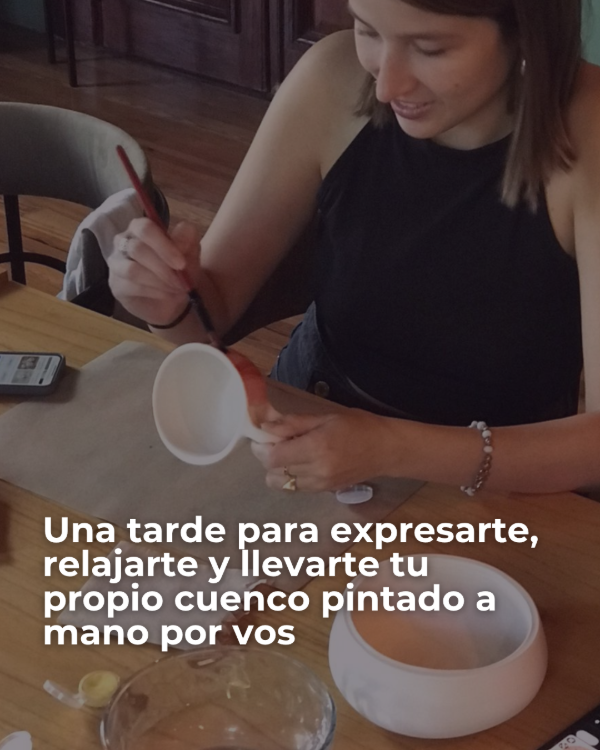 Después, vas a poder pintar tu propio cuenco con acrílicos, en un clima relajado, acompañado de música suave y buena compañía.